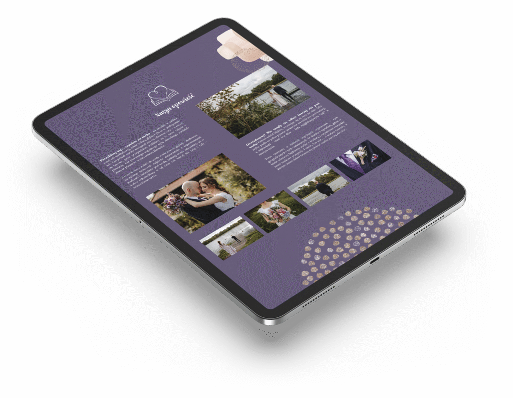 Pozwólcie gościom zajrzeć za kulisy Waszej miłości. Ciepła, romantyczna opowieść doda stronie osobistego charakteru.